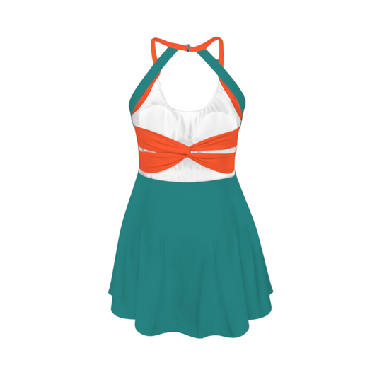 Merida Celtic Teal & Orange Open Back Flare Skirt Active Dress