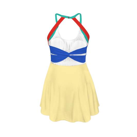 Not a Guppy Yellow Open Back Flare Skirt Active Dress