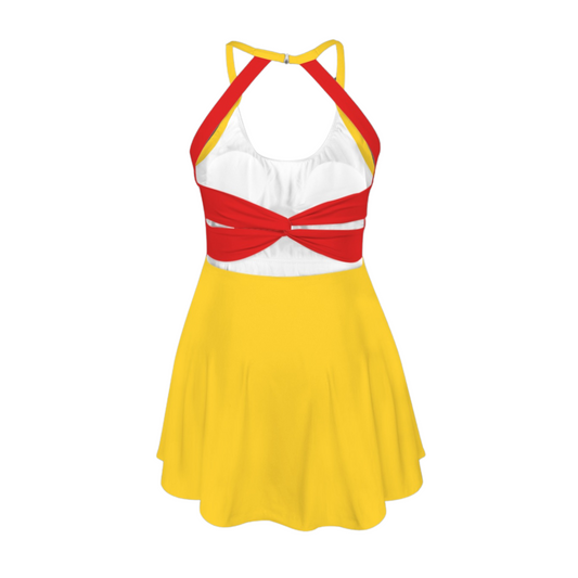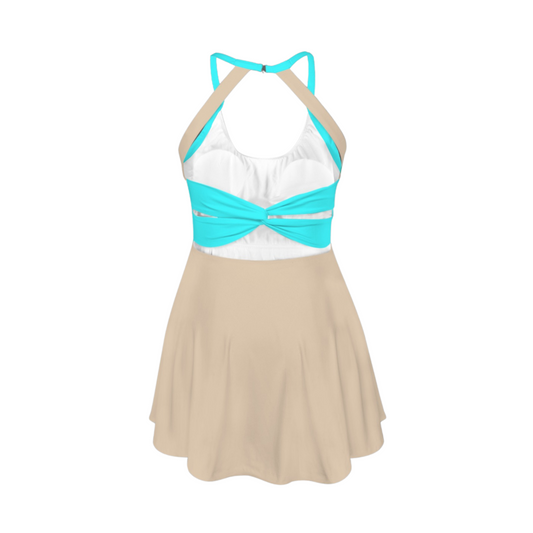 Pocahontas Colorblock Open Back Flare Skirt Dress
