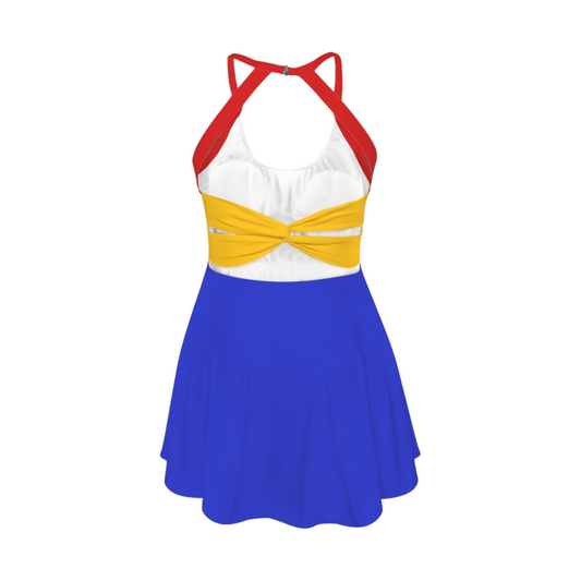 Woody Colorblock Open Back Flare Skirt Active Dress