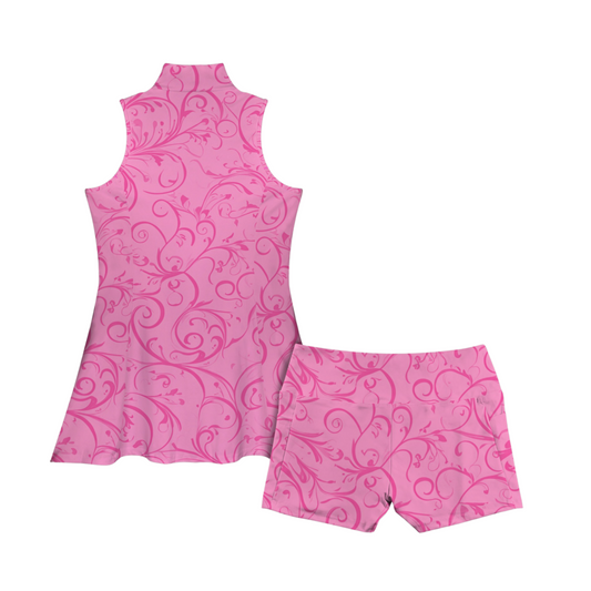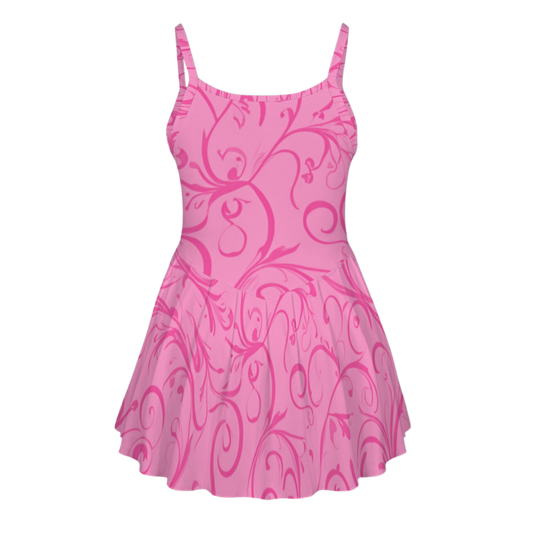 Aurora Pink Swirl Open Back Flare Skirt Active Dress