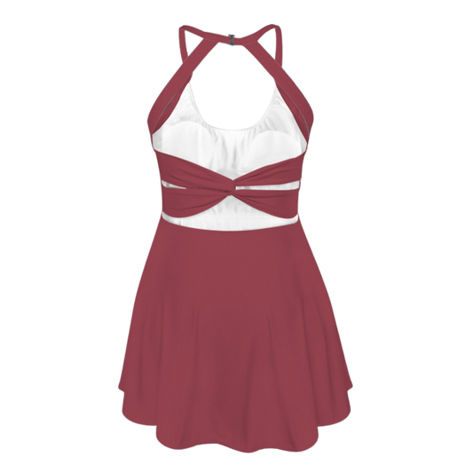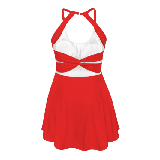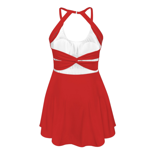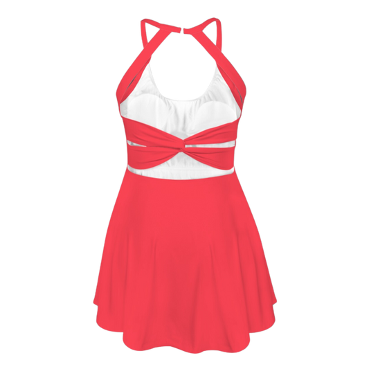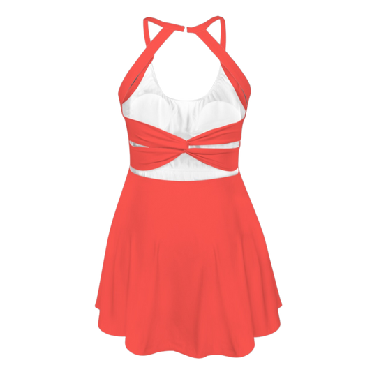 Flora Red Open Back Flare Skirt Active Dress