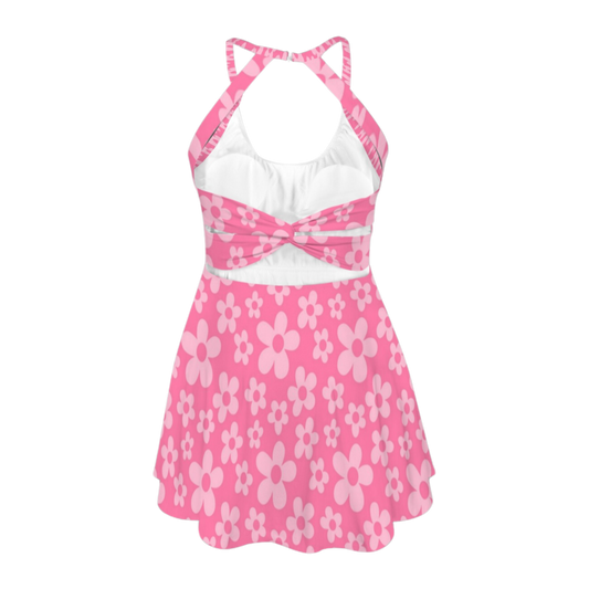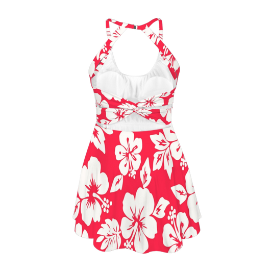 Lilo Hibiscus Open Back Flare Skirt Active Dress
