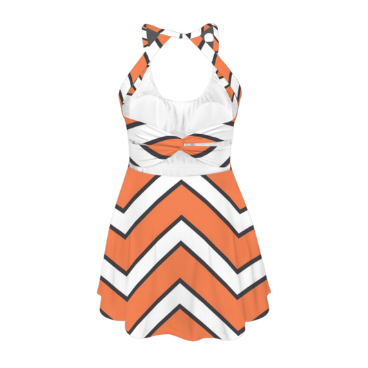 Clown Fish Stripes Open Back Flare Skirt Active Dress