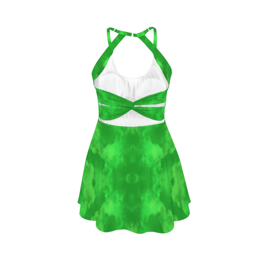 Green Witch Clouds Open Back Flare Skirt Active Dress