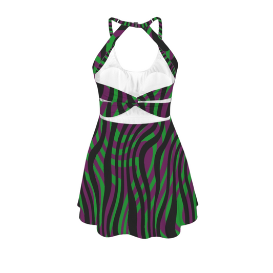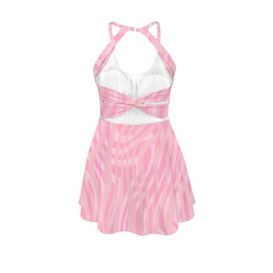 Pink Witch Wavy Print Open Back Flare Skirt Active Dress
