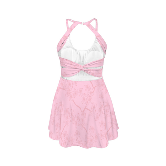 Pink Witch Cherry Blossoms Open Back Flare Skirt Active Dress