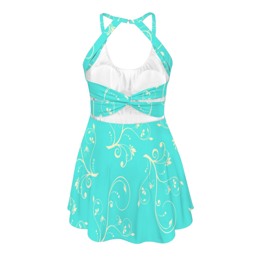 Jasmine Swirl Open Back Flare Skirt Active Dress