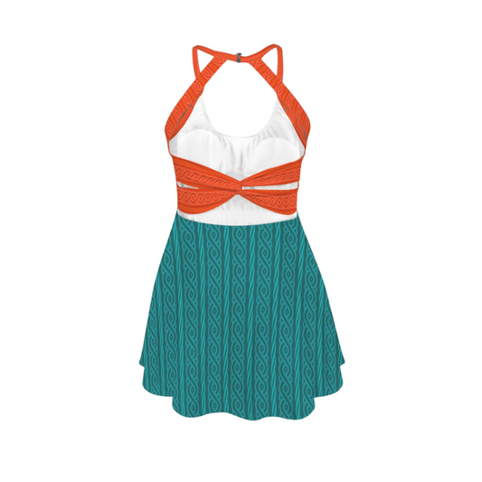 Merida Celtic Teal & Orange Open Back Flare Skirt Active Dress