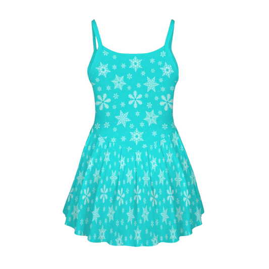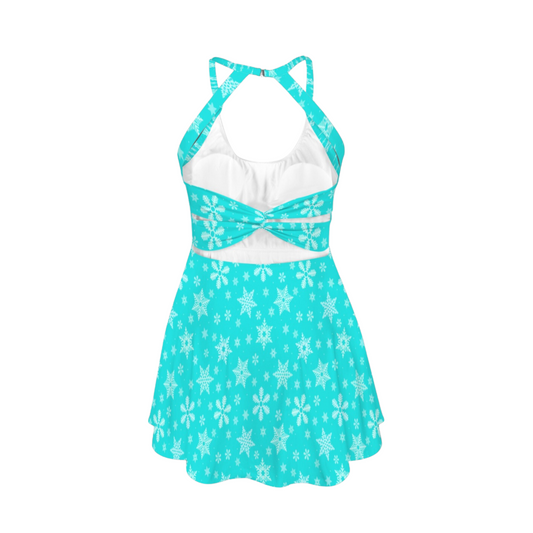 Elsa Snowflakes Open Back Flare Skirt Active Dress