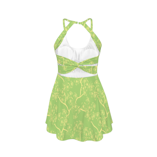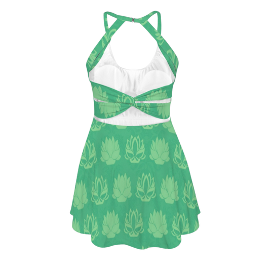Tia Green Lotus Open Back Flare Skirt Active Dress