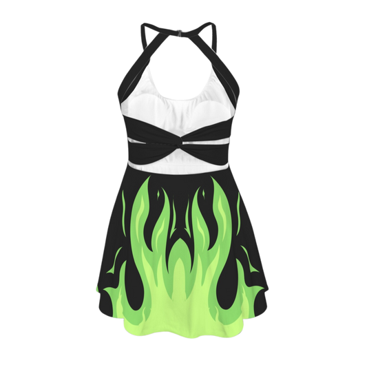 Mistress Green Flame Open Back Flare Skirt Active Dress