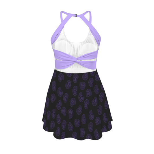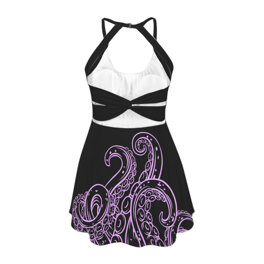 Sea Witch Black Open Back Flare Skirt Active Dress